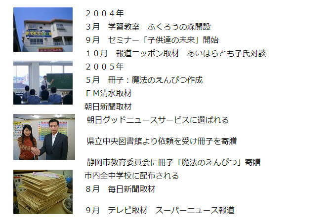 子供たち向けに作成した手作り小冊子「魔法のえんぴつ」が新聞テレビで紹介され、県立図書館の蔵書となったとき、この冊子の申込みフォームとともに、「夢の勉強法」「理科社会の勉強法」をホームページから無料請求できるようにしたのが最初です。